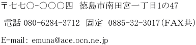 〒773-0015 小松島市中田町字西山91の14 徳島聖書キリスト集会宛